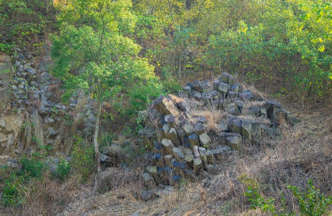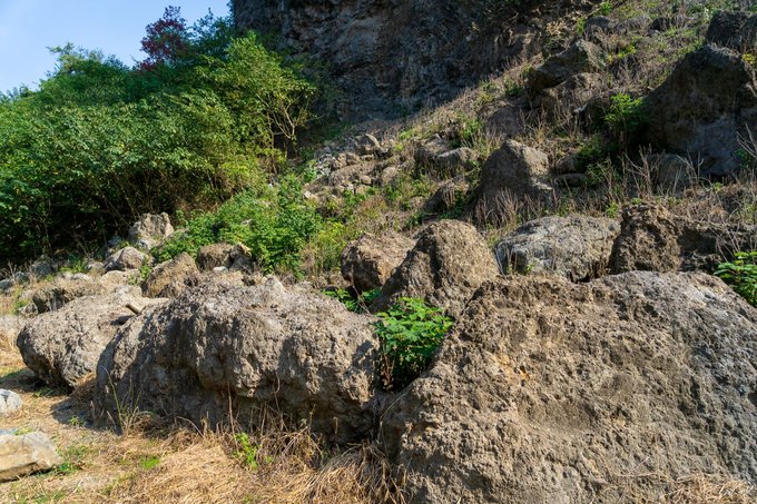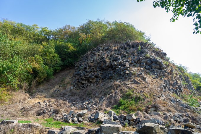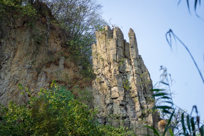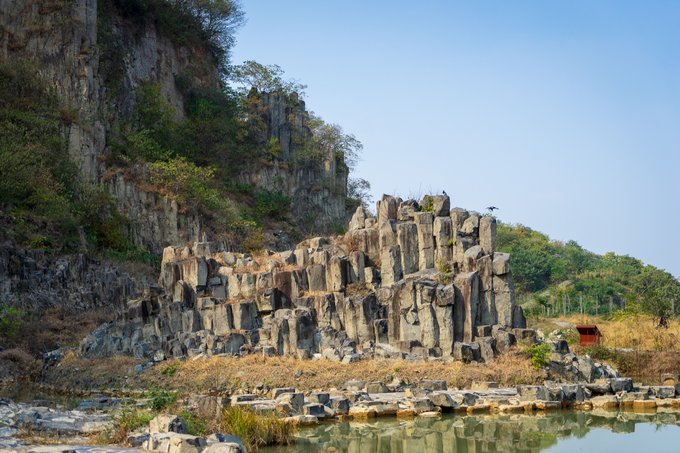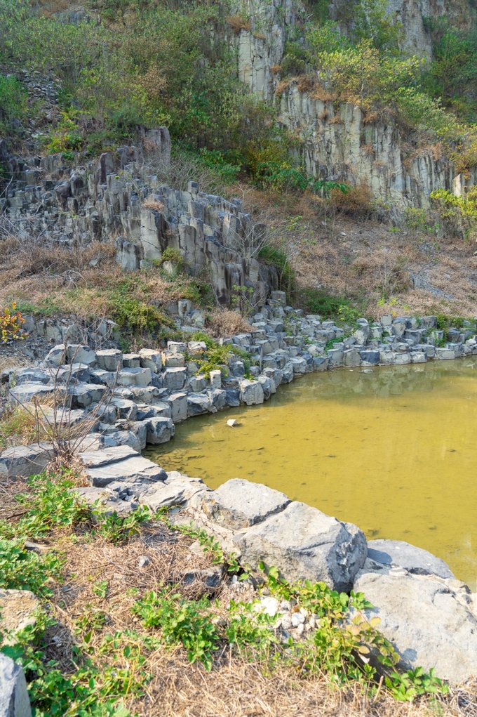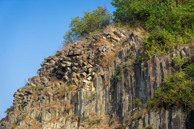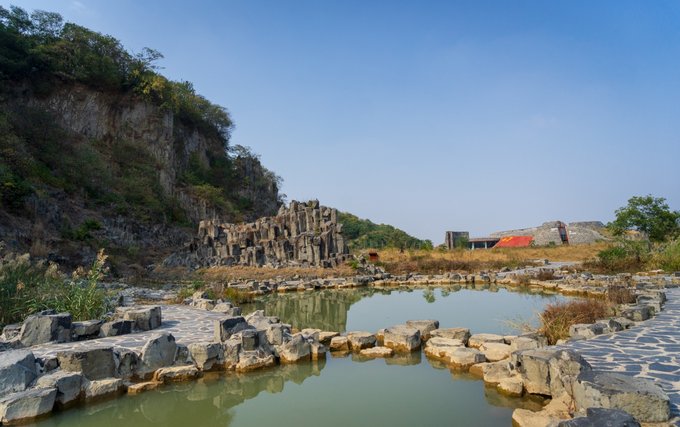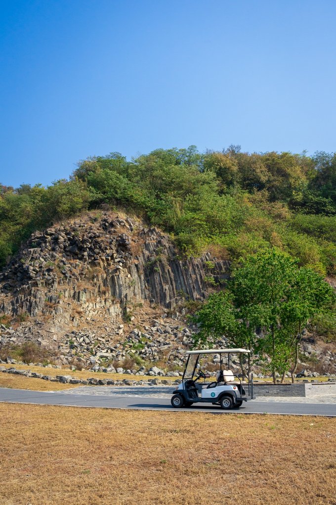 说来也怪,古往今来,文豪们在 扬州 留下的文字都太过柔软,以至后人总觉 扬州 温柔似水。可是,从扬州 市区驱车1小时,来到 扬州 代管的 仪征 市,温柔的气质逐渐散去,眼前是一片 石柱 的世界,满眼的青石色,让人恍然不知所在。 原是数百万年前,一座新生代火山喷发形成的盾形古火山,地质构造形成了形态各异的玄武岩 石柱 。再加上各种火山地质遗迹等,构成了百万年后,我们所能见到的捺山地质公园。