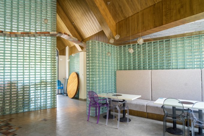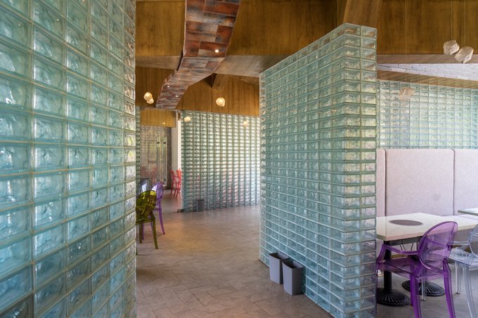 咖啡馆的外形也很特别,墙面向外倾斜,有种随时要塌下来的错觉。漫步在咖啡馆,恍然有种穿越到韩剧里的错觉。也是这看来粗糙的石头天地中的一处反差感的好去处呢。