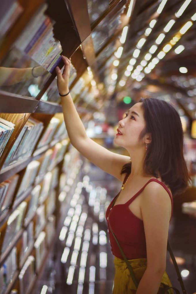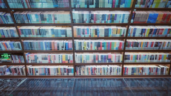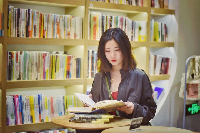 书架上摆放的书籍语言、主题、文体各不相同,只去细细翻阅,都能得到些许的乐趣。