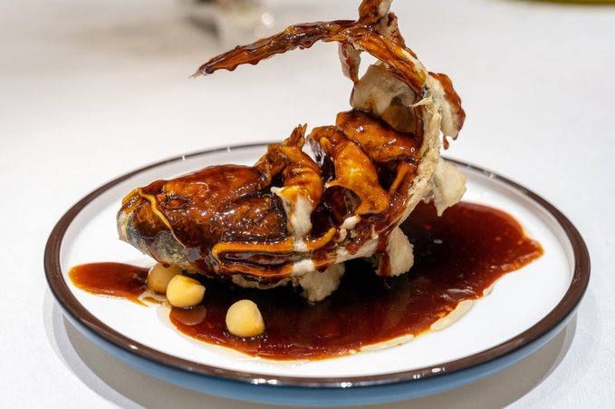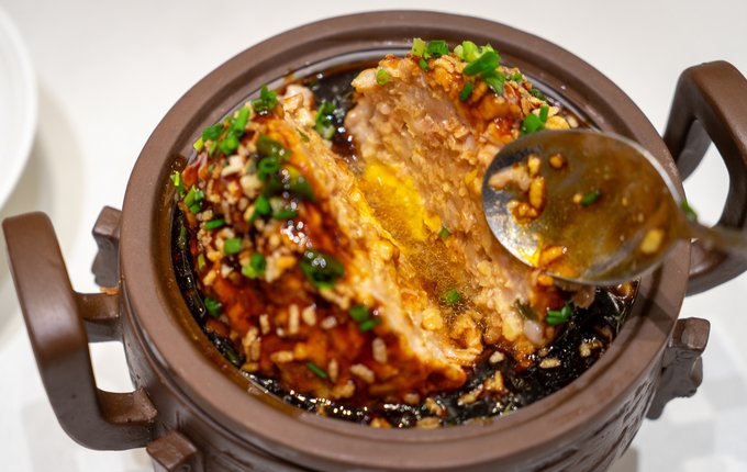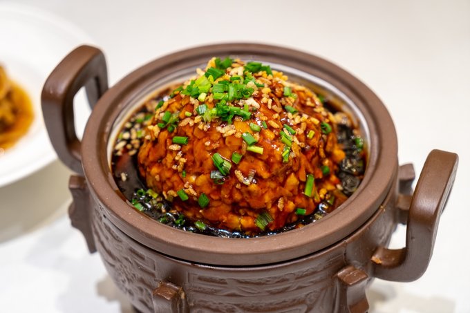 经厨师之手切开,内里有软糯的猪肉,清新的马蹄,更有咸蛋黄的提味。而这 狮子 头亦是用黑猪的五花肉手工摔打几小时至粘稠, 狮子 头表面再浇上鲜美的酱汁。一勺入口,多种口味融合在一小块 狮子头中,久久不舍得咽下,只想细细品味。 从食材到卖相,都做到了高级感。