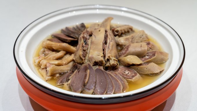 来 扬州 吃特色,也不能少了这 扬州 盐水鹅。若说相距不远的 南京 最爱烤鸭,那 扬州 便是一座“没有一只鹅能活着走出去”的城市了吧。禧狮楼的盐水鹅肉质鲜嫩略咸,摆盘精致。对我来说,它妥妥的替代了一场大餐中佐食的白斩鸡的地位。