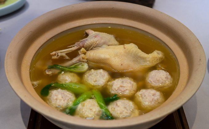 揭下红纸打开盖子,方见真容。与前一天的禧狮楼不同, 扬州 宴的 狮子 头外形更加清淡家常。一大份里有八颗 狮子 头,一只鸡浸在里面做汤头,还掺着几棵青菜。 舀一颗到碗里细品,味道是淡淡的家常炖,味道也不俗,回味悠远。