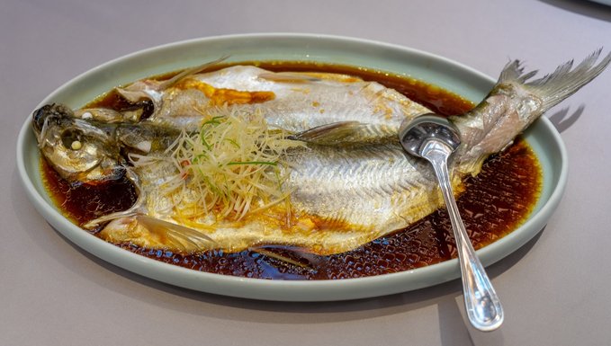 这道松鼠桂鱼,是禧狮楼的招牌菜之一,造型首先就超吸引人,更见绝妙的刀工。鱼肉的部分酥酥脆脆,浇筑的酱汁酸酸甜甜,是一道想必孩子们也爱吃的菜。