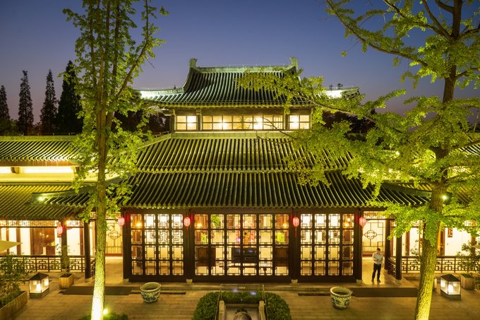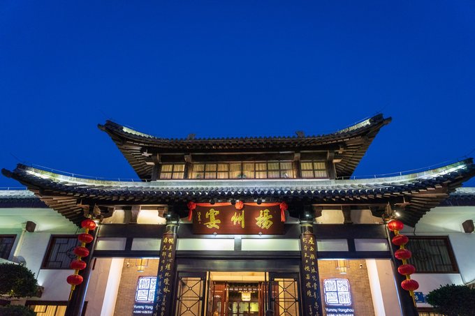 扬州 的第二顿大餐,是距离入住的瘦西湖温泉度假村不远的 扬州 宴。 夜色已经上扬, 扬州 宴便在这夜空中发亮,初见有些怔忡。气势恢宏的府邸大门,像是穿越到了什么古风小说里。