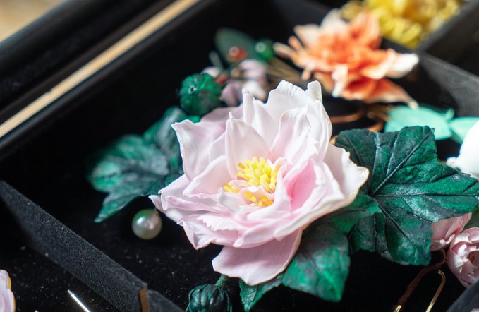——历史长河裹挟着远去的通草花 去年夏天《延禧攻略》热播时,富察皇后一道懿旨:“舍弃珠翠,改以通草绒花为饰”,让小众的通草花,作为宫廷配饰,进入了大众的眼帘。而在 扬州 双博馆,我也得以亲眼看到了通草花,甚至还把它戴在了身上。红色的花搭配白色的珍珠,优雅的复古风令人爱不释手。