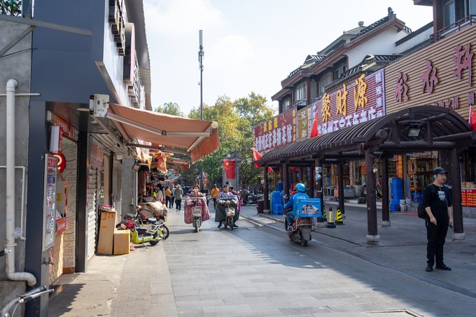 避开节假日人流量多的时候,东关街还容许自行车、电动车同行,这也算是国内古街的特例了吧。 ——食在东关街 清晨在人流还未涌上,到东关街的几十年老店赵氏叠汤圆,点一碗虾子拌面,四喜汤圆跟酒酿元宵也都来一份,最后不加糖的豆浆解渴。6.7块的均价,不似满心惴惴的商业街宰客的担忧,种类繁多的早餐点心,恨不得挨个点个遍。 店主优哉游哉的玩儿着手机,有客人进门也不急着招呼,客人纠结半天点好,唤他一声便成。