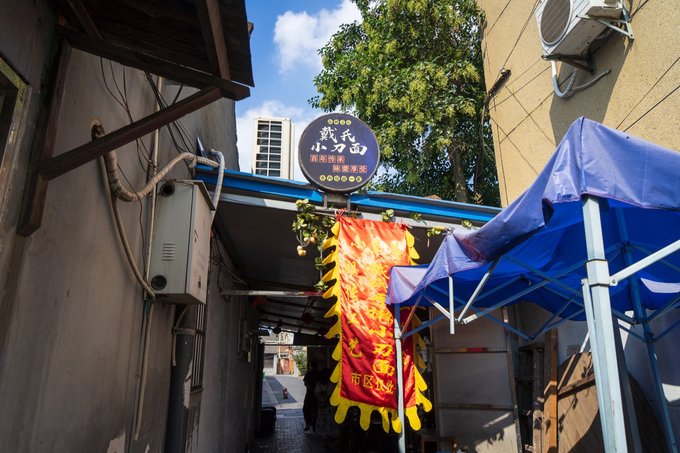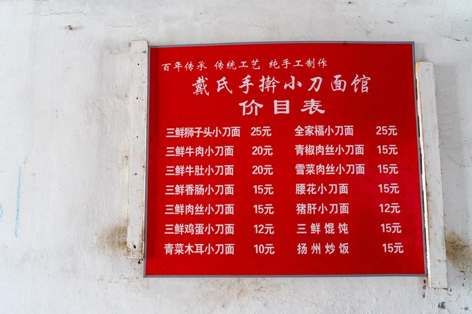 午时到不远处的戴氏小刀面,隐在深深的巷子里,同是跟着懂吃的人才能一眼相中的小店老店,一面锦旗相迎,门口大张旗鼓的贴着价目表,公开放心。