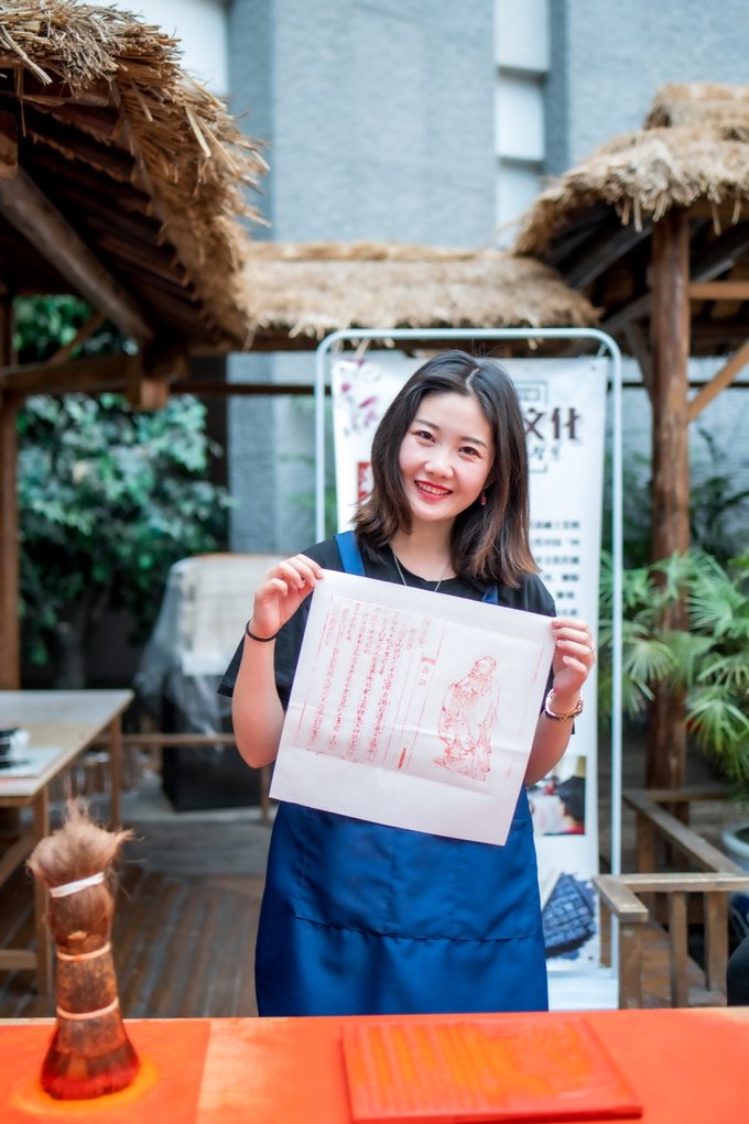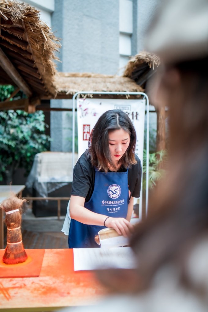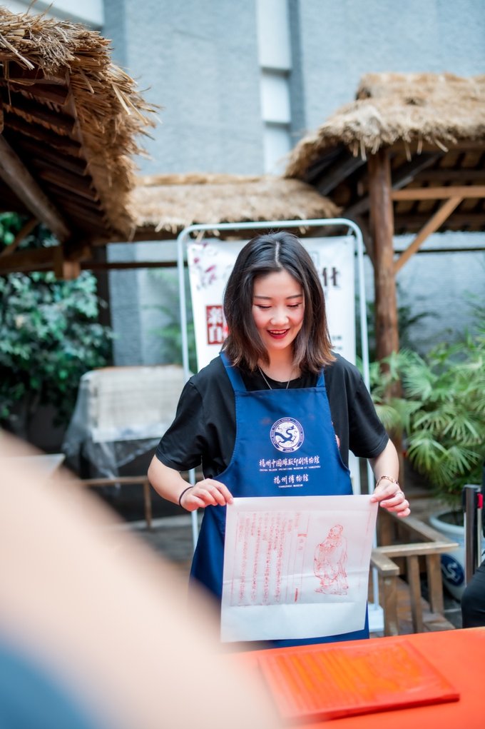 雕版印刷的每一个步骤都很重要,大家的通力合作,才能顺利完成一份书稿的印刷。 在活动区有雕版印刷的趣味体验,让游客亲自体验墨汁覆纸,轻推之后印刷完毕的这个步骤。跃跃欲试的上前印了一份《论语》,整个过程胆战心惊生怕出错,没想到印出来还是歪歪斜斜哈哈。