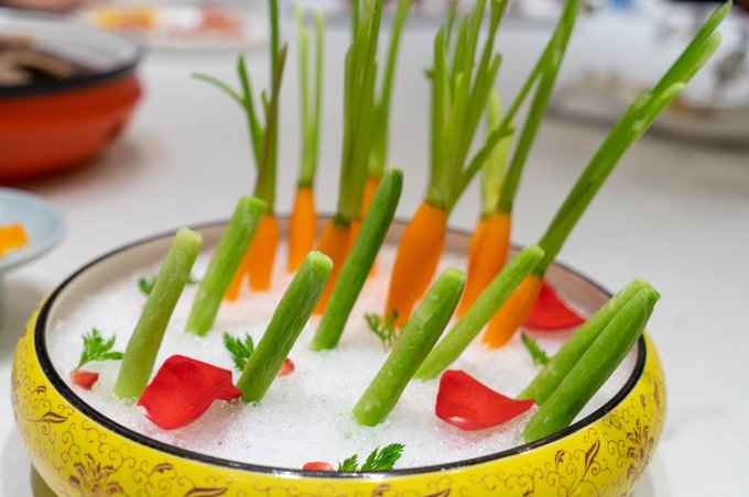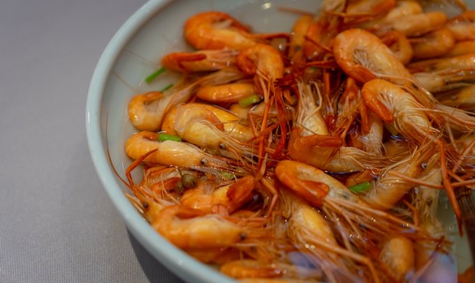 淮扬菜本就不是口味重的菜系,讲究“和、精、清、新”。清炒虾仁,冷食的小胡萝卜,卖相跟口味都很清新。