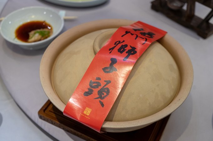 招牌菜点了一遍,当然漏不掉这道 狮子 头咯。 端上来时用盖子覆着,红纸上着五个大字“ 扬州 狮子 头”,等待食客揭下盖头的模样,十分有仪式感。