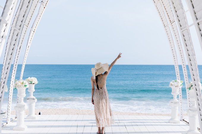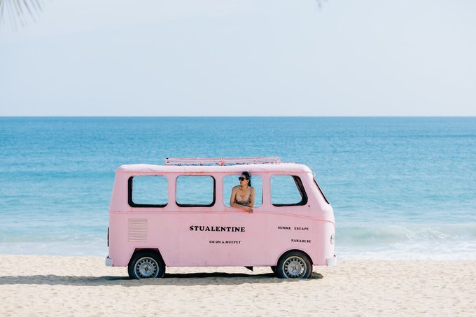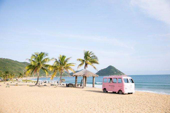 呆呆岛的海滩,沙细,海水碧蓝,这里还有椰树秋千、复古小汽车、白色教堂、古渔船等等。不要着急,继续往下看,随手一拍自带ins风的海滩,情侣、闺蜜、一个人都适合!