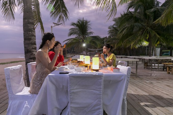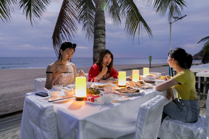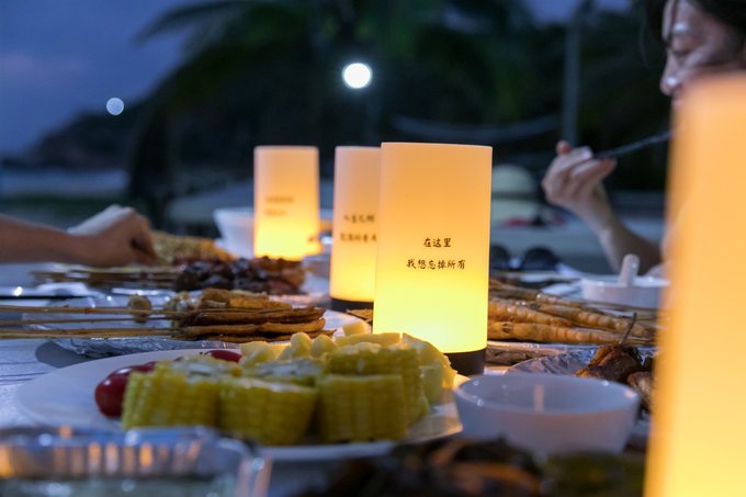 阳光、沙滩、网红打卡地、一望无尽的海岸线、典型气候造就的椰树林。白天,一起烧烤、戏水、享受日光浴。