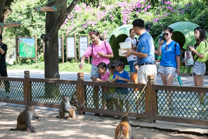 这个片区猴子很多,饲养员用大米喂它们,猴子吃的很厉害,在这里也可以购买猴食喂他们,猴子会成群结队的围着你,喂猴子的时候一定不能害怕和躲闪,会有猴子误以为你不喂它而攻击你。 如果和猴子互动,猴子虽然可爱,但是一定要注意安全。不要近距离接触猴子,不要当着猴子翻包包,它可能会上来拿东西哟,喂猴子注意自身安全。