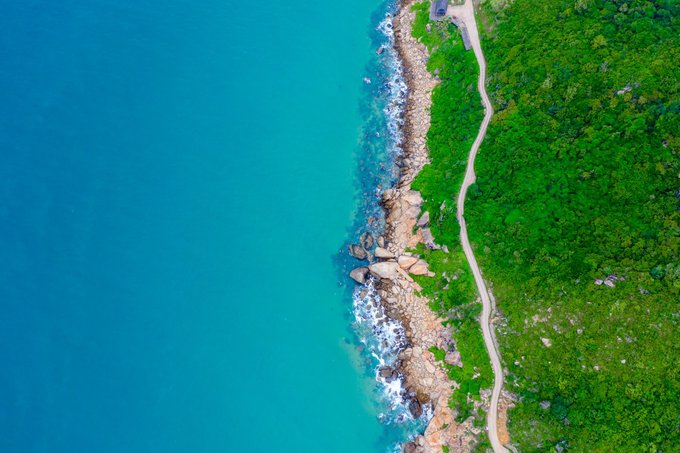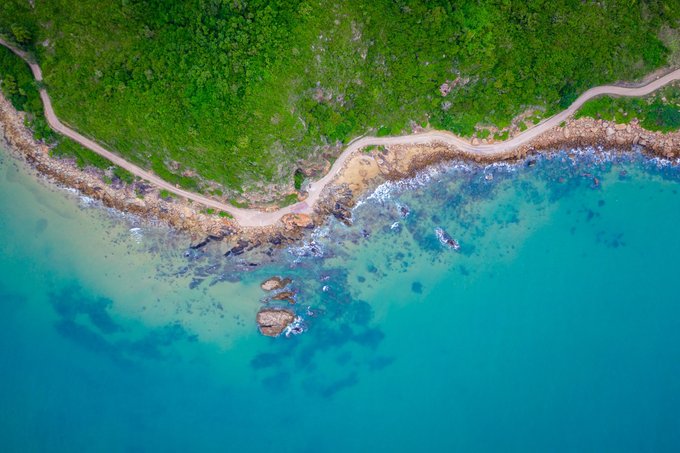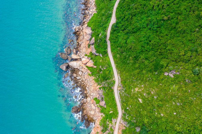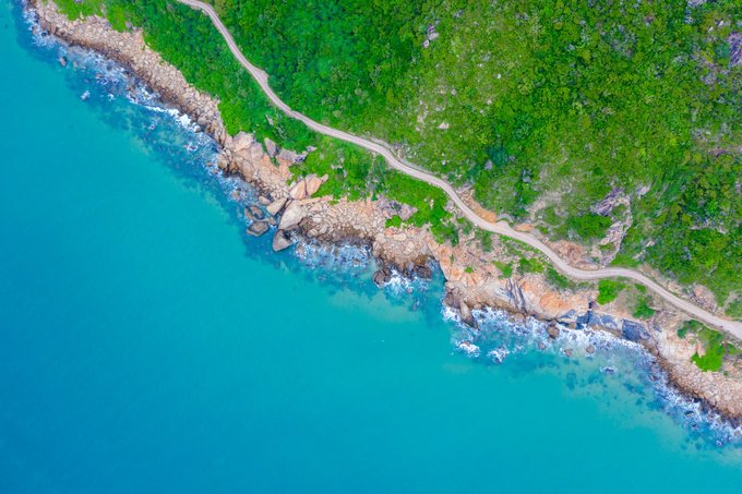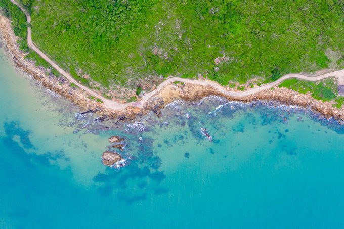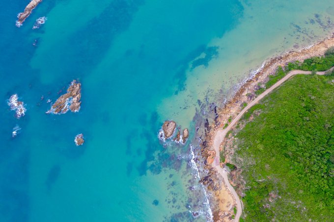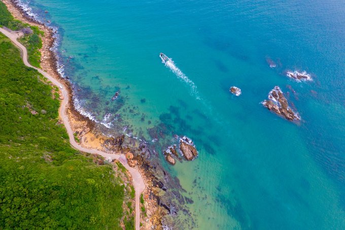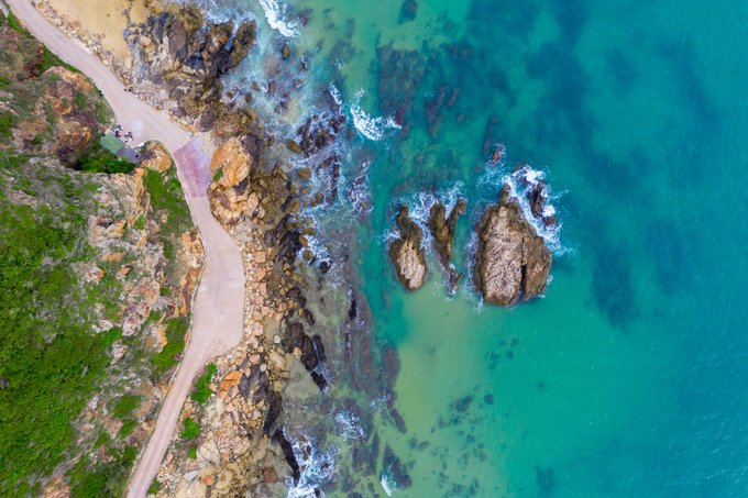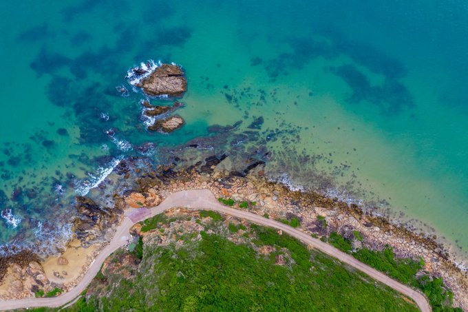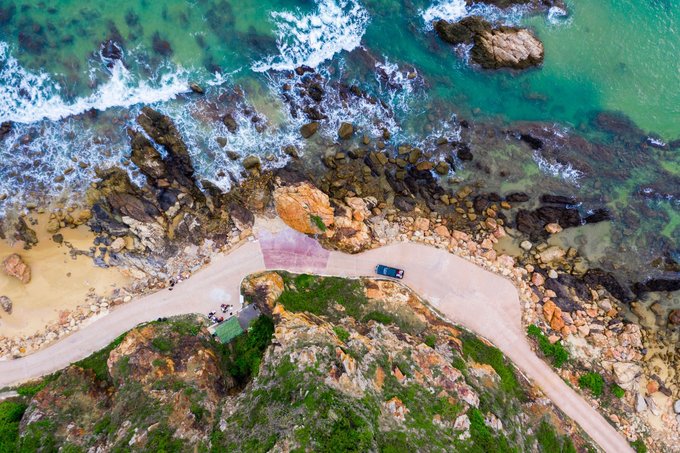 航拍公路,海有海的颜色,石有石的个性,我也只是我,这世上唯独的一个。景区的中巴车经过,是那么的和谐好看。 清澈和海面,通透的世界,一个充满诗情画意的栖息地。