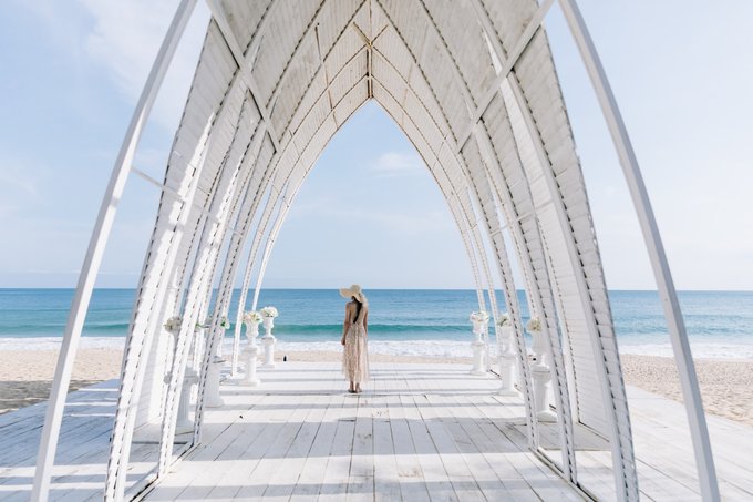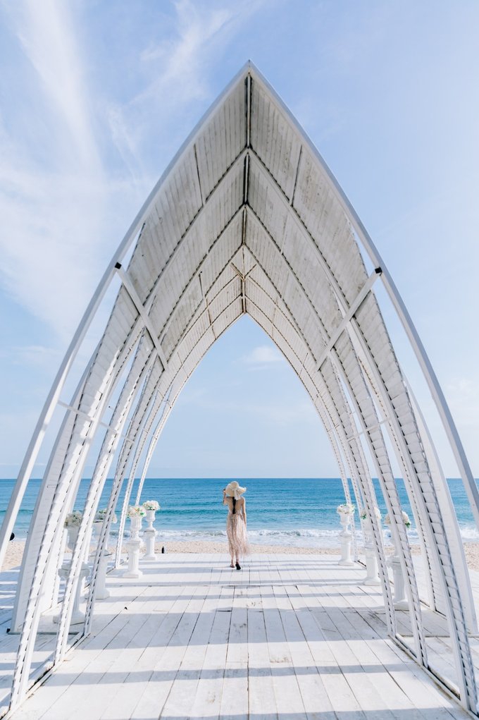 沙滩旁还建有一座洁白的教堂建筑,很多来岛上拍婚纱的都会选择在这里拍摄,面朝大海的方向站在教堂内,洁白的建筑与远处湛蓝的大海遥相呼应,随手一拍自带ins风的感觉。