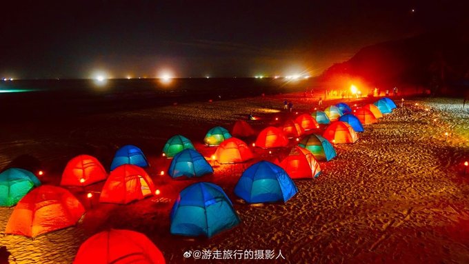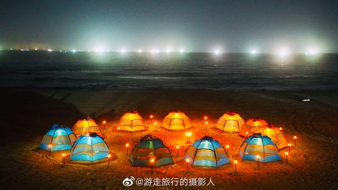 夜幕降临,篝火派对,星空露营,带上朋友或者家人,一起享受星空下的沙滩露营。
