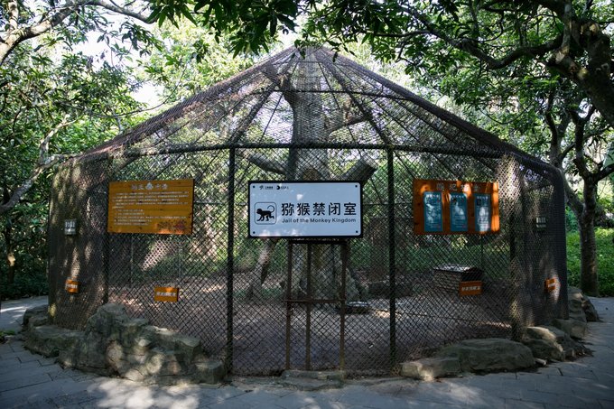 猴岛还有一个另外一个有意思的地方就是这里有一个猴子的禁闭室,这里面关了一只猴子,听工作人员说,如果哪只猴子犯错,屡教不改,就会被关在笼子里接受处罚。