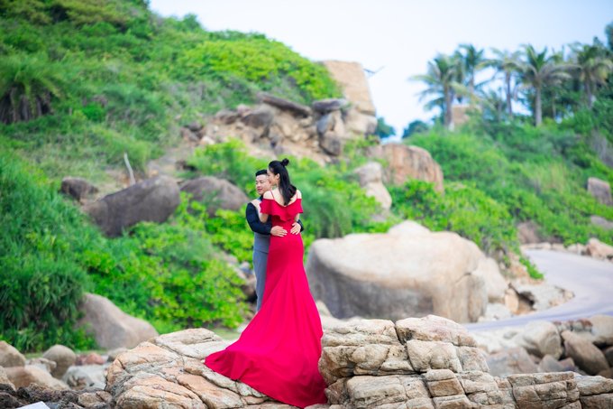 在海浪的起伏中,海的气息弥漫开来,是一种淡淡的海咸味,参杂着潮湿洁净的空气,很宜人。 这里有很多新人拍婚纱,自然美景加上纯洁爱情,希望他们永远幸福。