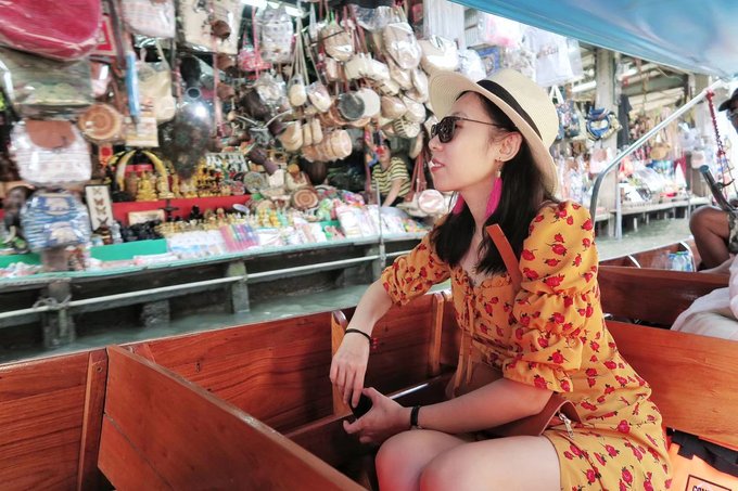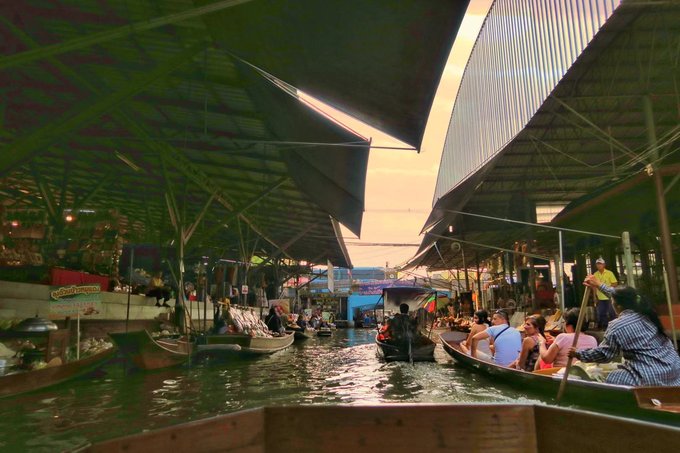 为了拍照好看可以坐在船头的位置,视野好而且杂物少。 交通:这里离曼谷市区比较远,建议包车或者在网上提前购买半日游(一日游)的纯玩团。车程大概2小时。 营业时间:7:00am——11:00pm 建议早点去,不但凉快,而且人少一些。