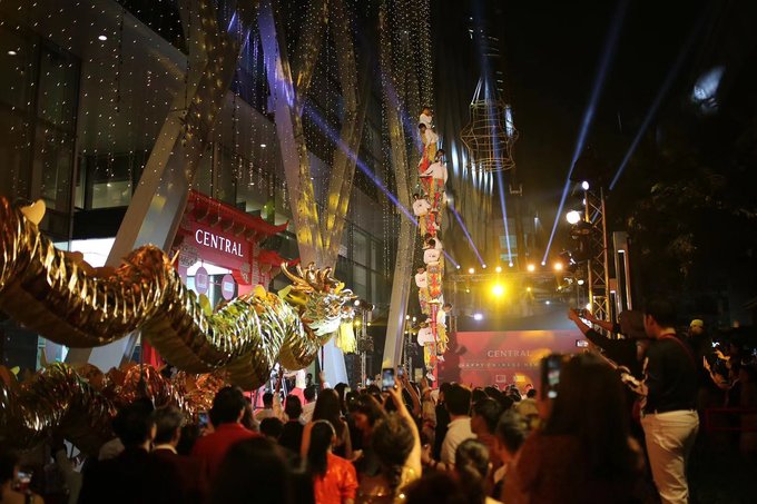 来到曼谷一定会忍不住逛逛逛买买买,我来的是曼谷三大商圈的尚泰百货centralwOrld 分店(CENTRAL@ centralwOrld),这里品牌最齐全,是一个综合性很高的商场,奢侈品牌和大众品牌都有,而且来的那天正好有活动,商场庆祝中国春节晚上不仅有泰国的当红小鲜肉明星Mark和他的女朋友kim到场还有168米的舞龙表演,人山人海,感觉比国内的过年气氛都要热闹。
