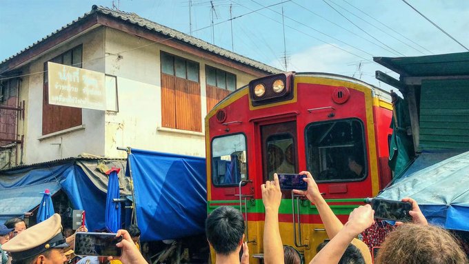 美功铁道市场,在网上看到这个地方的时候就一直想来,而且网红“冰冰姐”也在这个市场,但是很不巧,我来的那天冰冰姐不在!听说她来中国了~这个市场位于铁轨两侧,每当火车经过的时候摊贩就会将遮阳棚和物品搬离收回,火车过后再把物品恢复原样,吸引了大量的游客前来观看收东西的一刻。