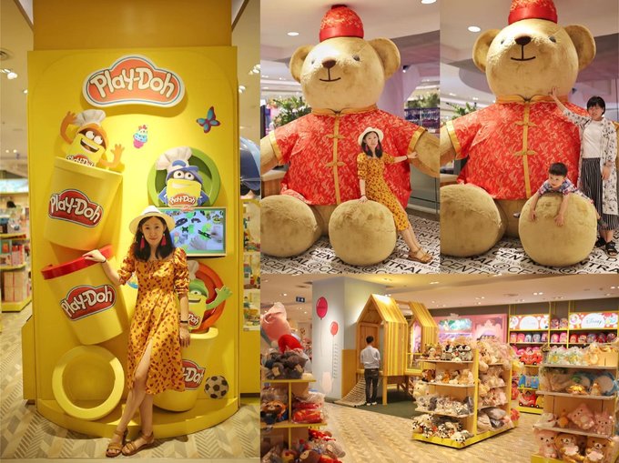 六楼是儿童空间,有宝宝的一定要逛一下,除了可以给宝宝买很多东西之外,还有亲子空间,可以带宝宝玩耍。被电梯口的大熊吸引,换上了喜庆的新衣,很多家长小朋友都在喜欢在这里拍照。 服务中心也在六楼,退税可以在这里,非常方便,柜台很多,退税柜台对面就是休息区,可以在这里休息,还有饮水间。