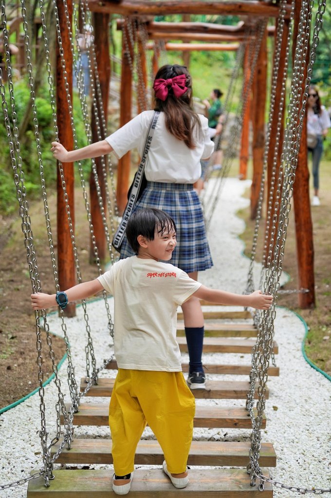 尤其是仙踪林,更是传统和现代元素结合的探索乐园,这里所有的游乐项目适合3岁以上的小朋友以及青少年去体验,运动字母,越野飞笼,凌空网阵,坡地滑梯,不仅娱乐性极强,还能在体验中,让孩子锻炼攀,钻,爬,滑等能力,很多家长说,这里既是乐园又是仙境,在天然氧吧中让孩子在游戏中挑战自我,益智和趣味二者兼顾,真是传说中的遛娃圣地。