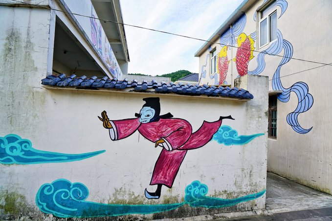 南洞艺谷位于舟山定海区,原来是个充满历史感的古村落,在当地你只要问壁画村,当地村民就会热情地帮你指路,在南洞艺谷,一个村落就是一个大景,每一户村民的民居就是一个艺术的小品,在村子里具有年代感的徽派建筑之中,形成了一个绘画艺术的天堂,当游客行走在村里的乡间小路,田间地头,到处都是富有生活气息的绘画作品,让人不禁觉得,小渔村也有大艺术。