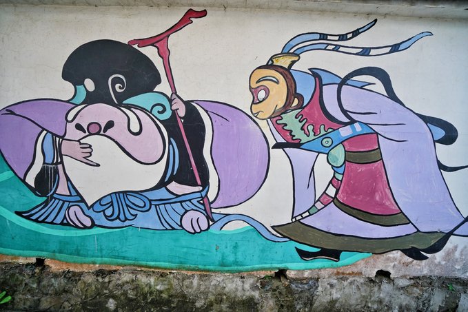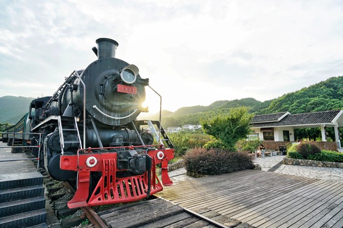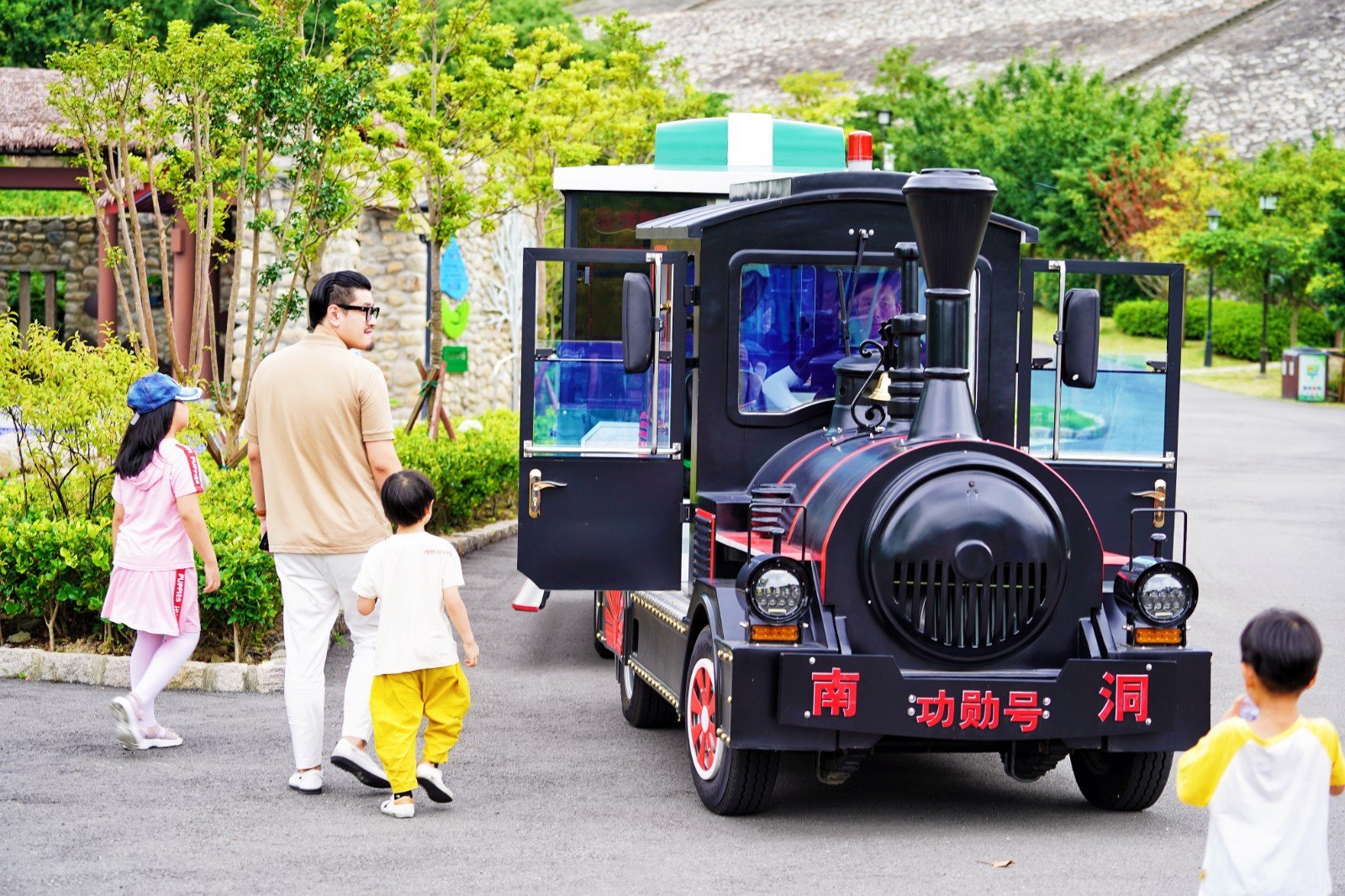 当地村民以自己房子外墙为纸,结合当地风土人情,创作了以海洋文化,农业生产,花鸟鱼虫,民俗民风,动画人物为主题的一系列作品,既生动又极具艺术气息,在村里的广场上有一列来自沙漠戈壁的退役绿皮列车相当的具有年代感,据当地村民说这列火车是当年运送过我们国家研制导弹卫星科研人员的专列,如今岁月斑驳下的火车已经成为游客怀旧的拍照之地。不过南洞艺谷除了是座艺术气息浓郁的小山村之外,还是一个父母遛娃的圣地。