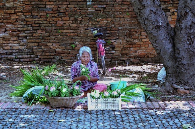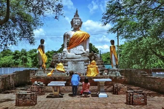 来 泰国 已经好几次了, 曼谷 也是每次的落脚点,常规的 芭提雅 也不再想去,于是,这一次,打算来一场不同寻常的旅行!但是,我还是把冷水泼在前头,一个人的旅行并不是想象的那么美好,很多事情会让这场旅行变得不如意。 根据攻略,我选择了坐火车去 大城 ,也就是阿育塔亚。第一步,早起,如果你想在第一时间到达 大城,早起是必须的,于是,我六点钟就起床,匆忙打了grab的摩托(选择余地很大,一个人,摩托车最方便,还不怕堵车,司机会带你风驰电掣的穿梭在大街小巷)到达华南蓬火车站(Bankok railway station)在窗口和售票员说买去阿育塔亚就好,20铢,很便宜,对不对?但是,鉴于我之前看到的一篇攻略,后来根据我的分析,这个票是没有座位号的,但不是想象的那种随便坐,而是我们国内意义上的无座票。别问我为什么买无座票,售票员阿姨给我的就是这个票,检票大叔也说了,这个票没有number,好在,一路上,没有人要我把座位让出来!在这里说一下,我是周末的行程,车上人蛮多的,到阿育塔亚时,基本坐满了,所以我寻思着,其实,很多人也都不按座位号入座的吧! 在车上,还买了杯冰咖啡,10铢,一路就这么吹着风,喝着咖啡,听着旁边大妈大爷们聊天,经过一个多小时,中午到达阿育塔亚站。要留意的是,火车晚点开很正常,前几站都在 曼谷 ,车速也很慢,周围也没啥好看的!出了廊曼机场附近那个站,车速才稍微快起来,不然,看着旁边高速上的汽车,你真的不会觉得自己在坐火车!