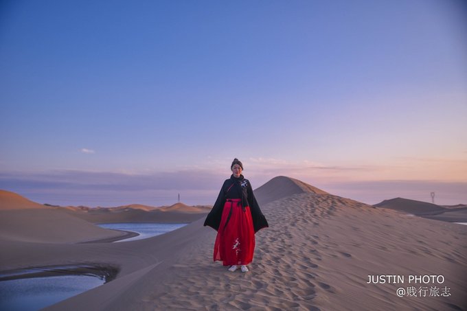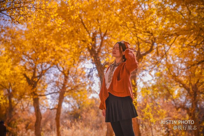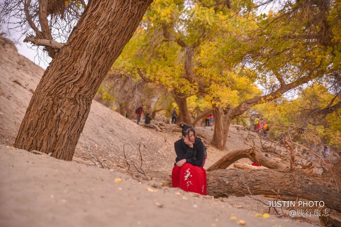 来到胡杨林,一袭红衣自然是最夺目的穿着,也最能拍出大片,但如果不想和大部分人撞衫,那么选择艳丽的蓝色、纯净的白色、或者协调的同色系也是可以的。