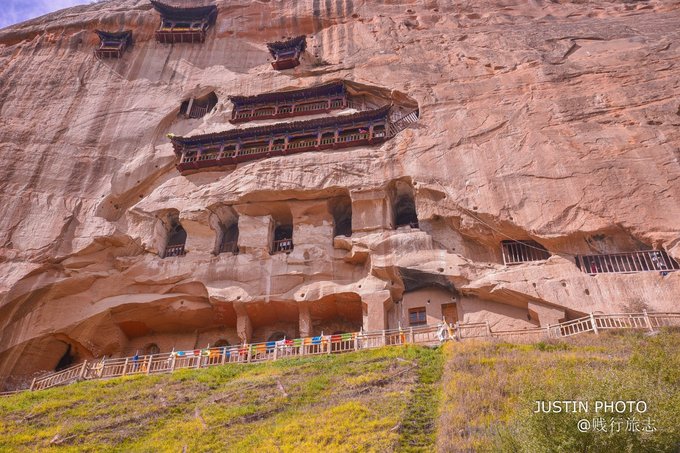 三十三天石窟,开凿于北凉时期,由 敦煌 人郭瑀及其弟子所开凿,上下七层,一共是21个石窟,整整齐齐地排列在悬崖上,悬崖目测有百米高,雄伟让人叹为观止,气势十足,在路上远远就能看到,石窟镶嵌在墙壁上,造型之奇特极为罕见,但让人感叹的是,其实这些洞窟的背后,还隐藏着一个鲜为人知的故事。