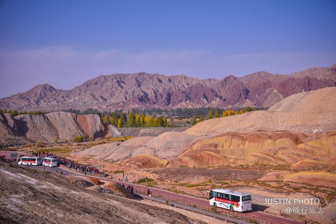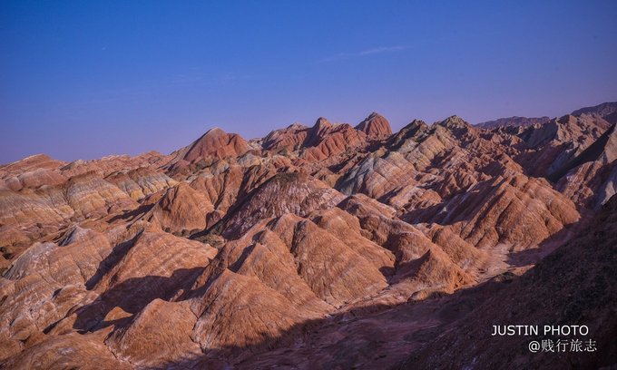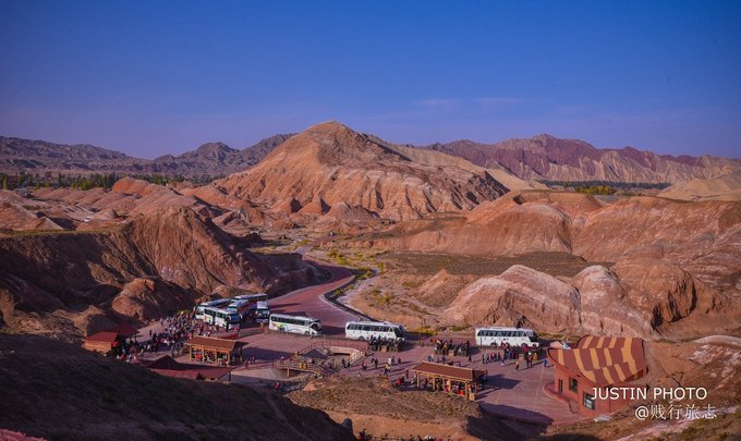 张掖 丹霞国家地质公园总共占地面积有536平方公里,主要包括冰沟丹霞和七彩丹霞两大风景区,由于选择了去马蹄寺,一天内的时间有些紧迫,所以放弃了冰沟丹霞。