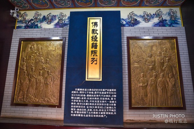 走进大佛寺庙的藏经阁,在这里你可以看到每个时期不一样经书的保存方式,已经还原当时在藏经阁制作经书的情景,这些都有相互对应的雕像。