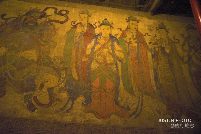 张掖 大佛寺大佛殿里面是没有灯光的,为的就是防止光照对于壁画的加速氧化。