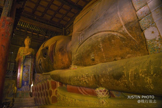 寺庙内最大的镇寺之宝就是室内木胎泥塑卧佛就在里面。