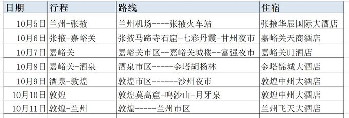 这次 河西走廊 主要从 兰州 出发,游玩 张掖 ,嘉峪关, 酒泉 , 敦煌 ,行程为7天,由于是开车游,所以时间并不会太紧,整体的行程还算比较舒适,每天安排的景点都是我个人推荐的。