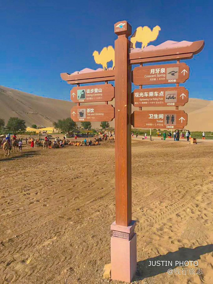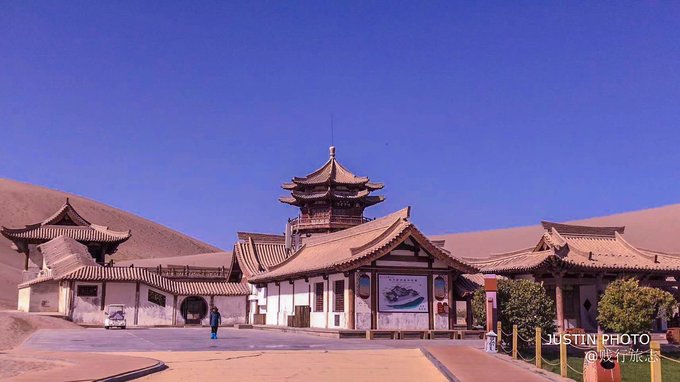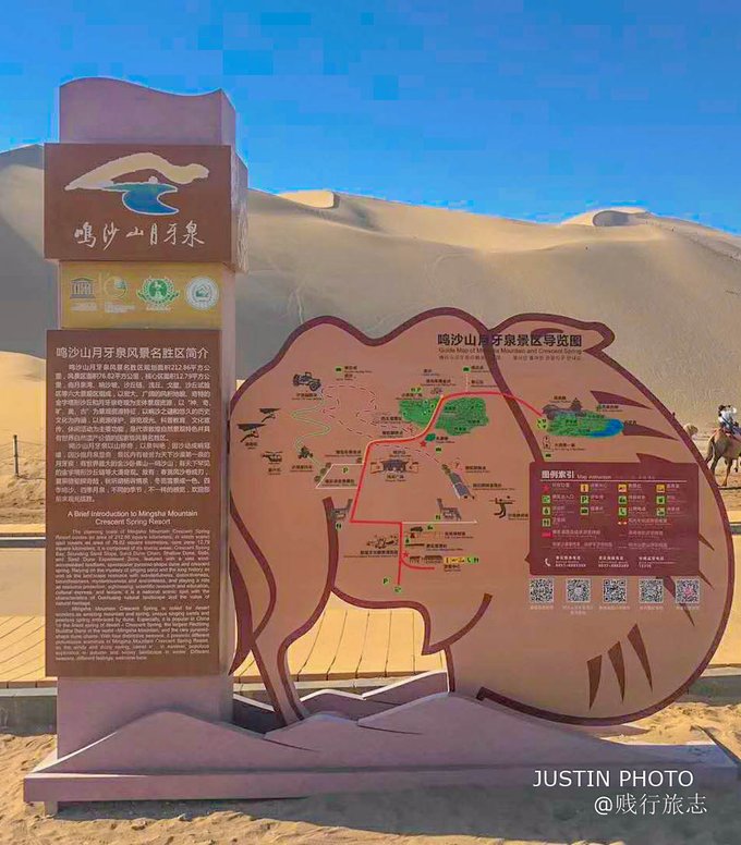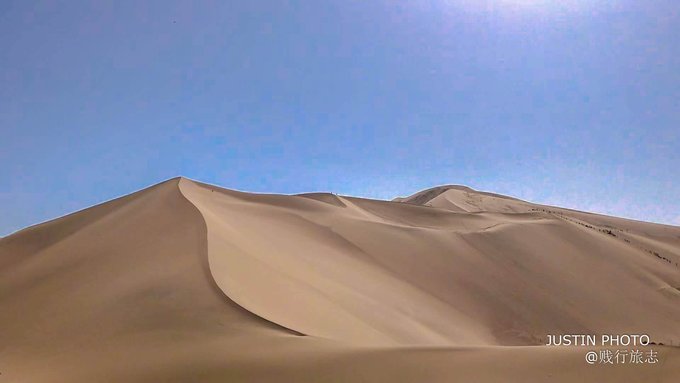 鸣沙山因鸣响而出名,所以呢,很多人对于鸣沙山的鸣响一直非常好奇,相传以前在这里是一片水草肥美的地方,后来因为一个汉代的将军在此西征遭遇突袭,这时候突然来了一场沙尘暴,把双方的军队永久地埋于鸣沙山下,他们的拼杀之神也就成为了鸣沙山的千古鸣响。鸣沙山一直是处于一个非常干燥的气候,年降水量少,日夜的温差较大,由于是沙漠的地貌,所以这里经常会出现沙尘暴,漫步在鸣沙山下,一定要做好防尘的准备,不然上山一趟一定会吃上不少尘土。