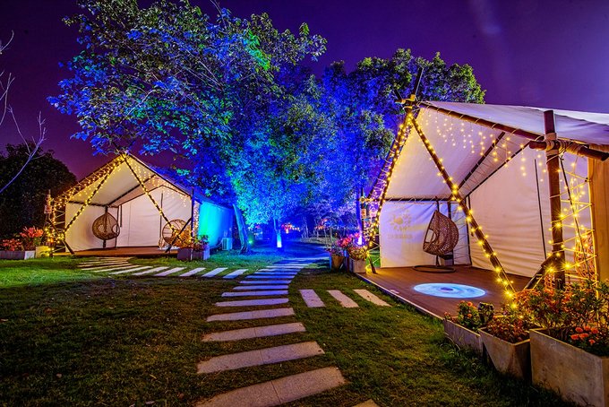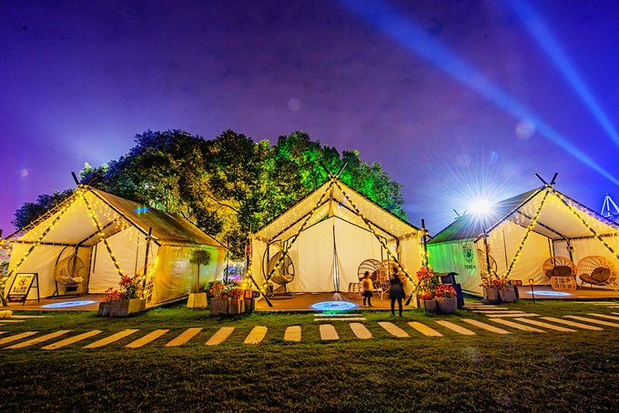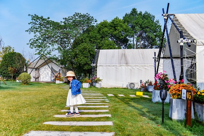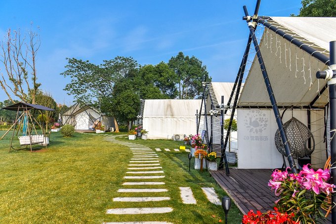 在花博汇过夜,问茶村的清宿酒店是一个不错的选择,各种规格的房间,套房,能满足不同的需求。再一个,就是我们住的“花海露营”帐篷房。