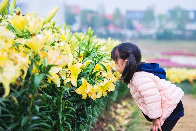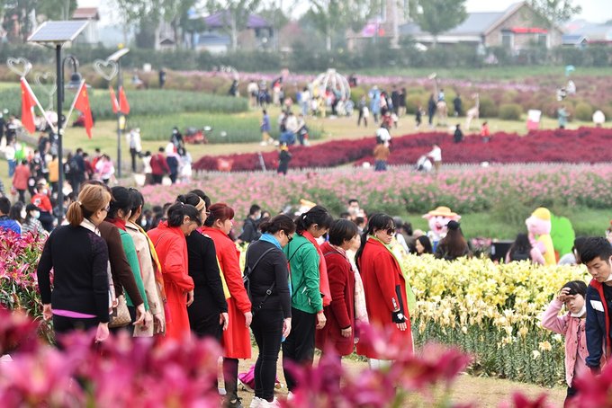 入园这天是周末,景区人比较多,入园处的百合花海就更是人从众了。