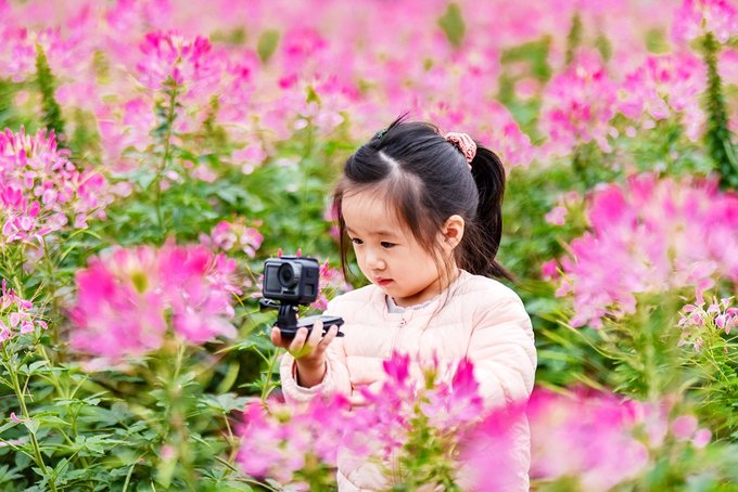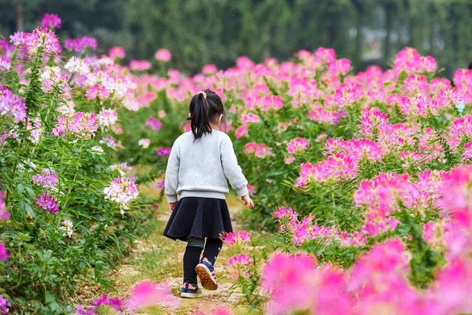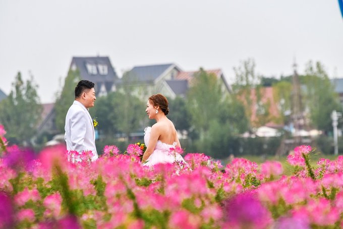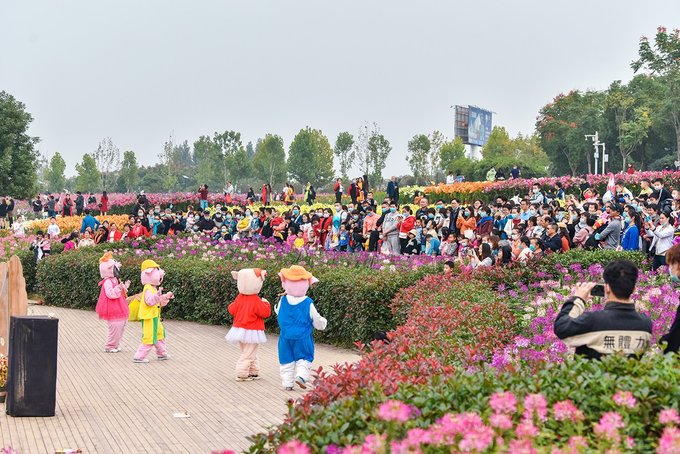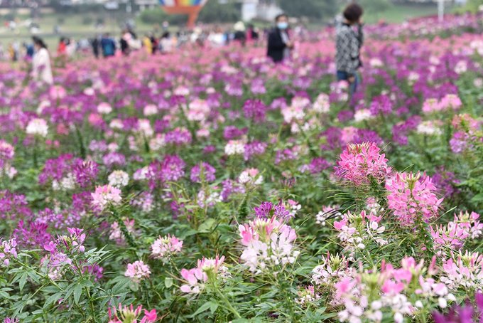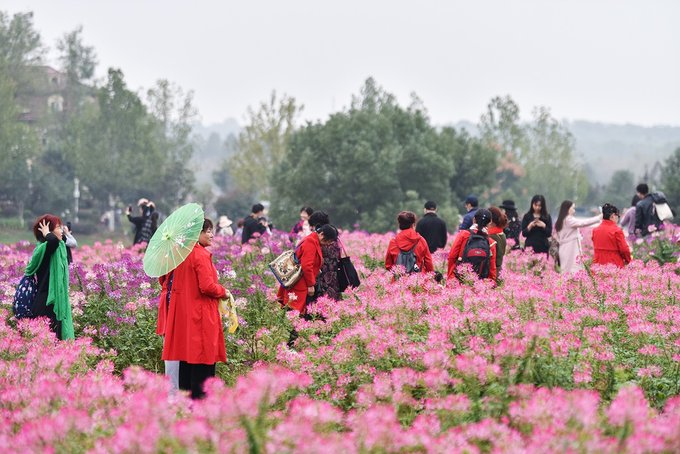 花海里拍照的姑娘小伙赏心悦目,但更引人注目的还是要数结伴来玩的阿姨们了,从服饰到POSE到状态,都完美诠释了什么是最美夕阳红。