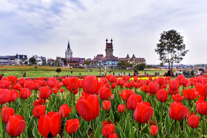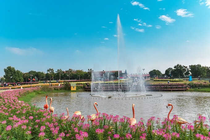 春有满园郁金香斗艳,夏日里马鞭草花海和大片的向日葵开的耀眼,等秋天再来,邂逅的则是泌鼻的百合香、以及浩瀚粉黛乱子草的清新浪漫。还有各种洋槐菊、醉蝶花、玫瑰、月季、三角梅、鸡冠花等等点缀其间,一波接一波的花期,一浪接一浪的花海。