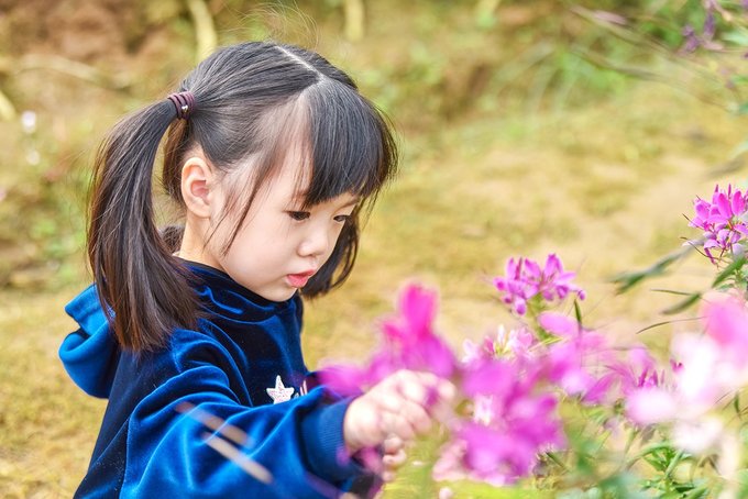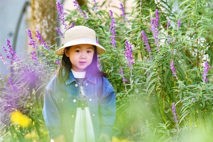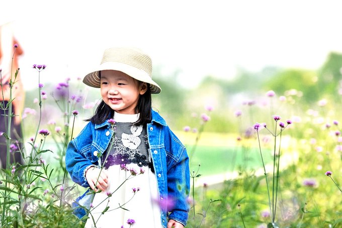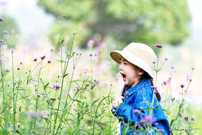 马鞭草里撒欢的我家小姑娘