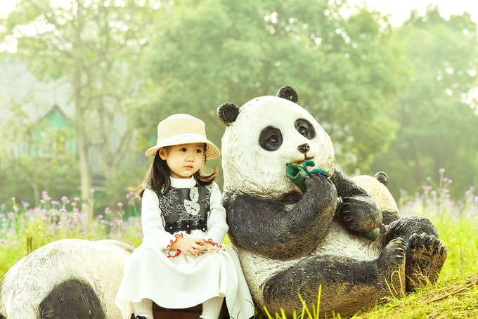 还有花田边遇到的她爱的大熊猫宝宝。