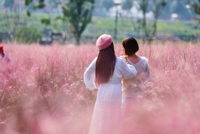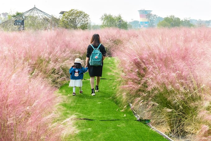没有遇见马鞭草花海的遗憾,还好有粉黛乱子草来补。