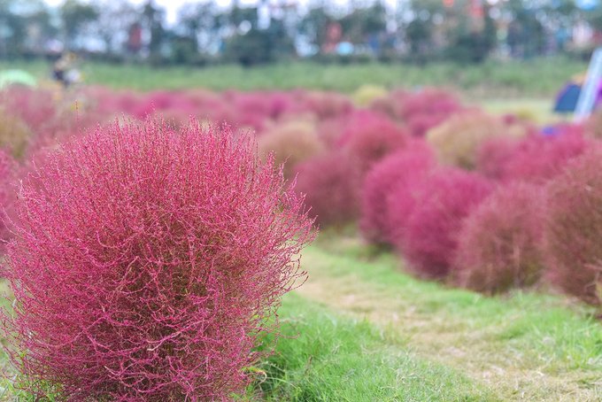 新晋网红草—红地肤(也有人叫它波波草),每年10月以后地肤转色进入最佳观赏期。