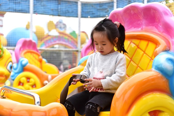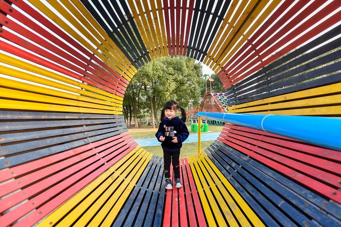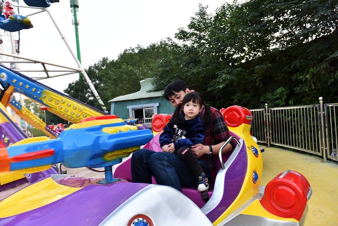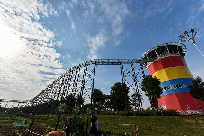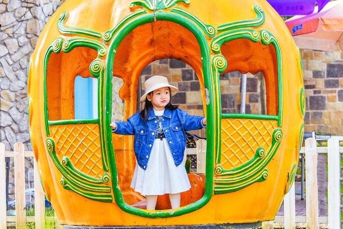 快乐大本营是一票制,为了方便拍照,我们特意挑在了隔天工作日的傍晚进去,里面已经没有什么人了,小姑娘一个人承包了整个乐园,颇为得意。