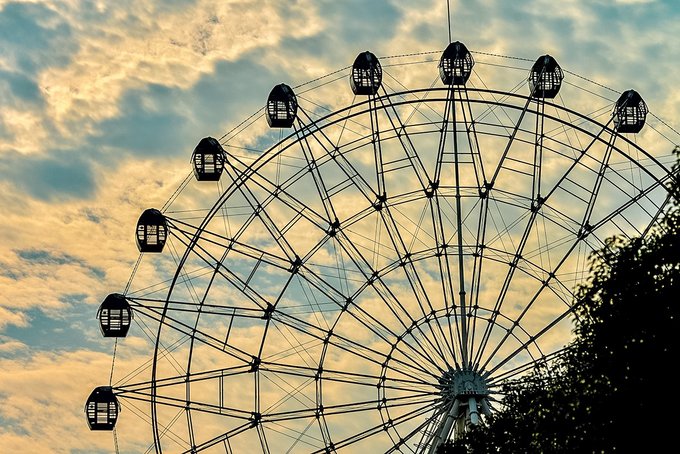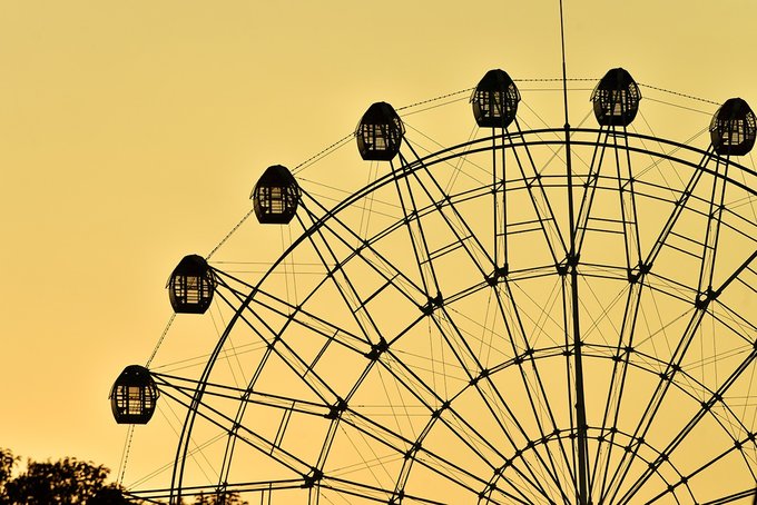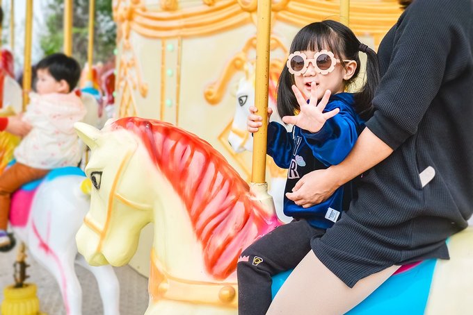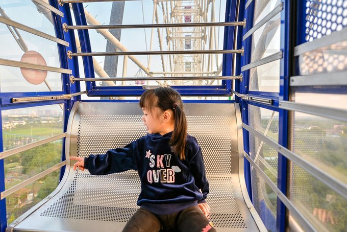 第一次坐摩天轮,还以为小姑娘会害怕,没成想,她除了刚上去时有点懵外,其余的时间,全程看吊箱外面的风光,看这边开着的花,那边跑着的马,状态极佳。