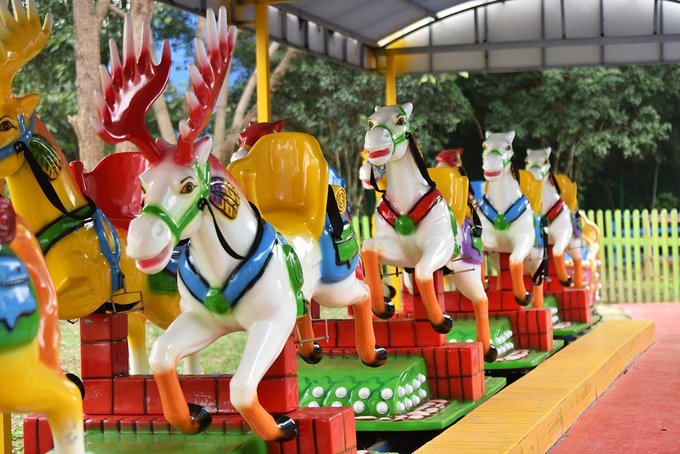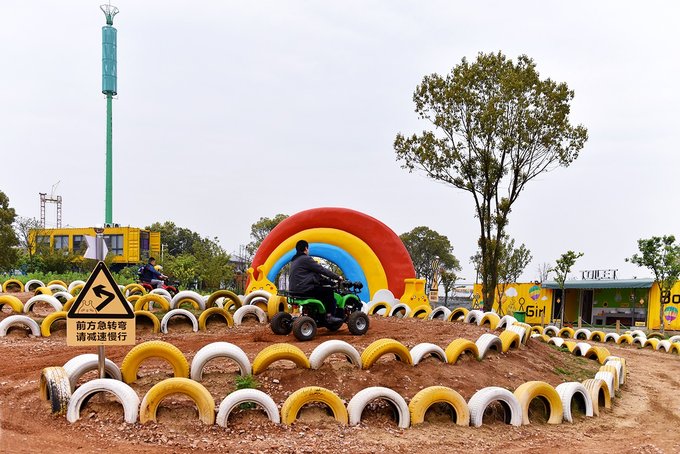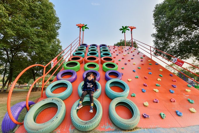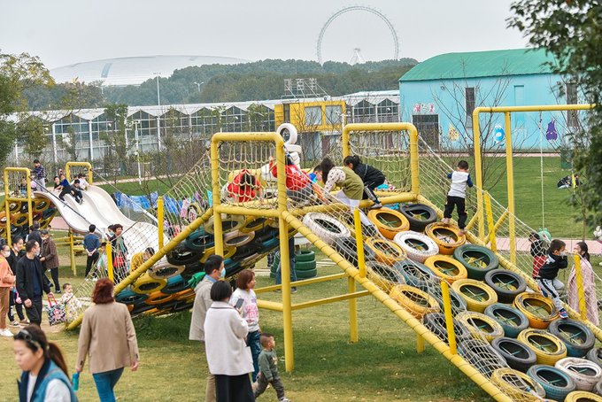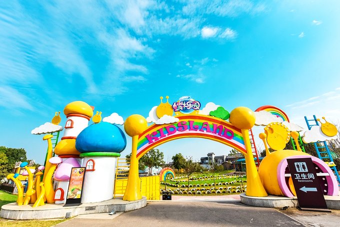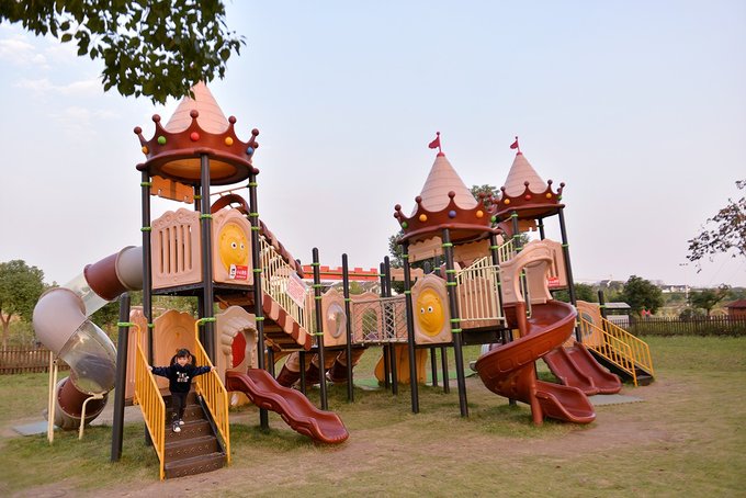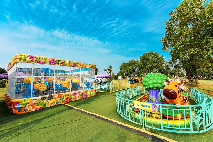 入园区左侧就是蜗牛乐园,这个区域除了像卡丁车、旋转木马等少数的三五个项目收费外,其它全部免费。不知道是因为它地理位置太好,还是项目真的太吸引小孩,反正我家小姑娘在里面足足玩了小半天,拉都拉不走。