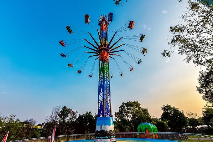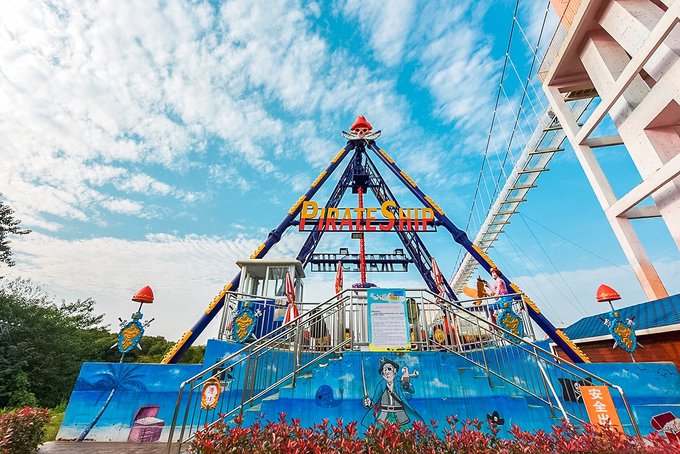 景鸿游乐园的面积很大,项目也很多,有一个专门的囊括几十种游乐项目的快乐大本营,有刺激的海盗船,激情碰碰车,有能俯看整个花博汇的巨大摩天轮,全透明的玻璃吊桥,以及勇敢者才能挑战的高空玻璃滑道等等,一个一个玩下来,大半天怕是都不够。